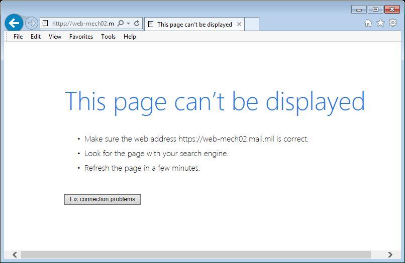Despite owning the mail.mil domain, the Enterprise solution is incapable of receiving a request to the unencrypted port 80 and redirecting users to use SSL over 443. Even better would be not only redirecting to an SSL port but taking users from mail.mil to web-mech02.mail.mil. Perform a 3xx series redirect!